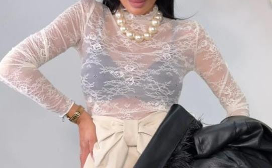 Maglietta in pizzo semitrasparente